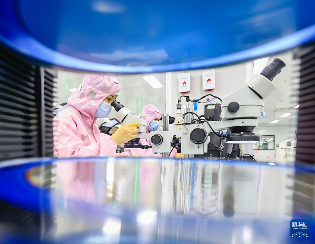 正在江西天漪半导体无限公司出产车间,手艺人员正在检测芯片产物(2024年2月28日摄)。发(吴江摄)。