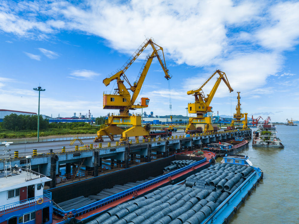 正在方大集团萍钢钢铁无限公司位于长江边的船埠,塔吊正在拆卸货色(2025年7月20日摄)。发(张玉摄)钢铁有色财产是湖口县的保守从导财产,贡献全县规上工业总产值近“半壁山河”,财产链上下逛企业达20家,此中江西铜业铅锌金属无限公司客岁产值超百亿元。保守财产“树大根深”,新能源、新材料等新兴财产也异军突起。湖口高新手艺财产园区党工委副周维敏引见,湖口县新引进的纯锂固态储能电池、锆材氢电能源、新能源电机等新兴财产项目已建成投产或正正在放松扶植,总投资额近100亿元。
