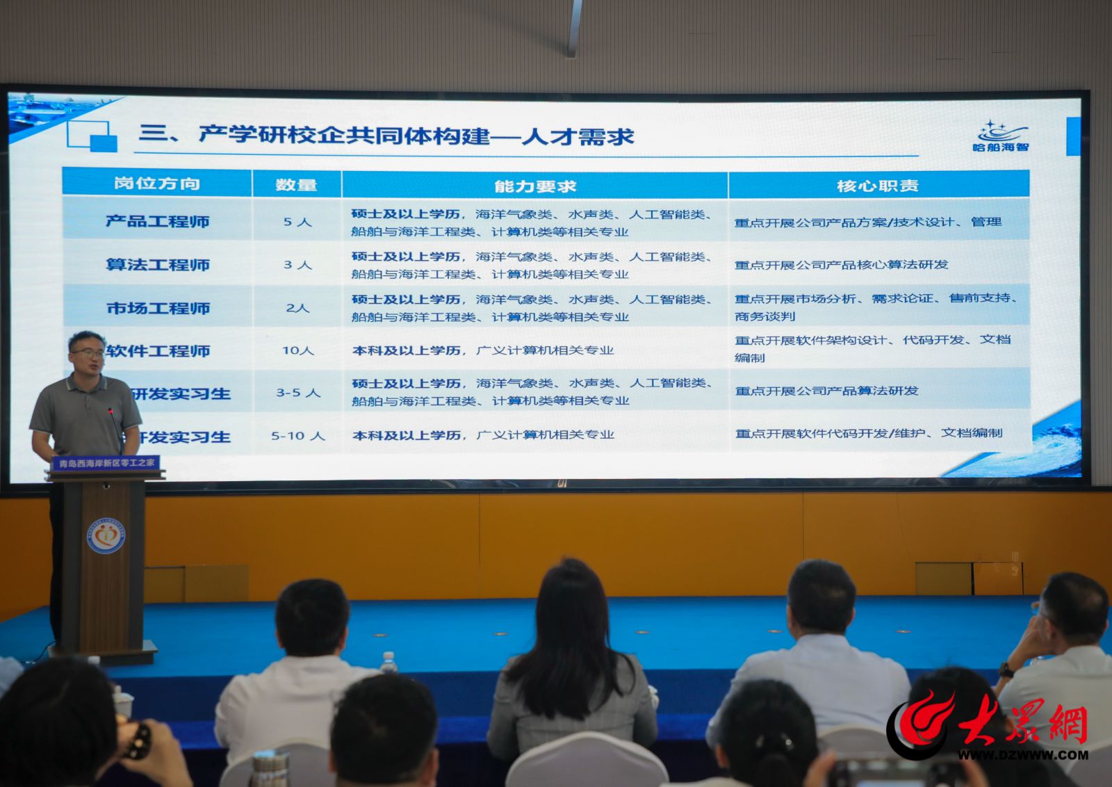 同时,青岛哈船海智科技无限公司、青岛黄海学院等高校展现了学科劣势、练习实训资本及方案;校企合做标杆企业青岛中加特电气股份无限公司分享了合做经验取;新聘用的职业规划导师代表、青岛大东从动化科技无限公司董事长做了讲话。