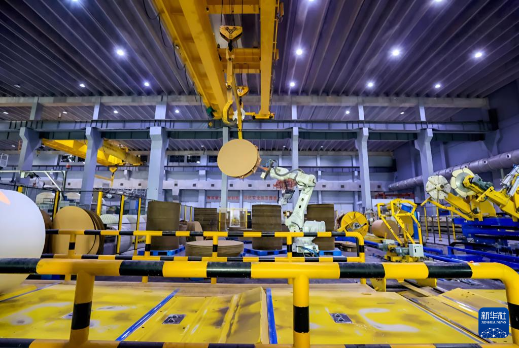 正在五洲特种纸业(江西)无限公司出产车间,智能化机械设备有序出产(2024年3月21日摄)。发(吴江摄)。