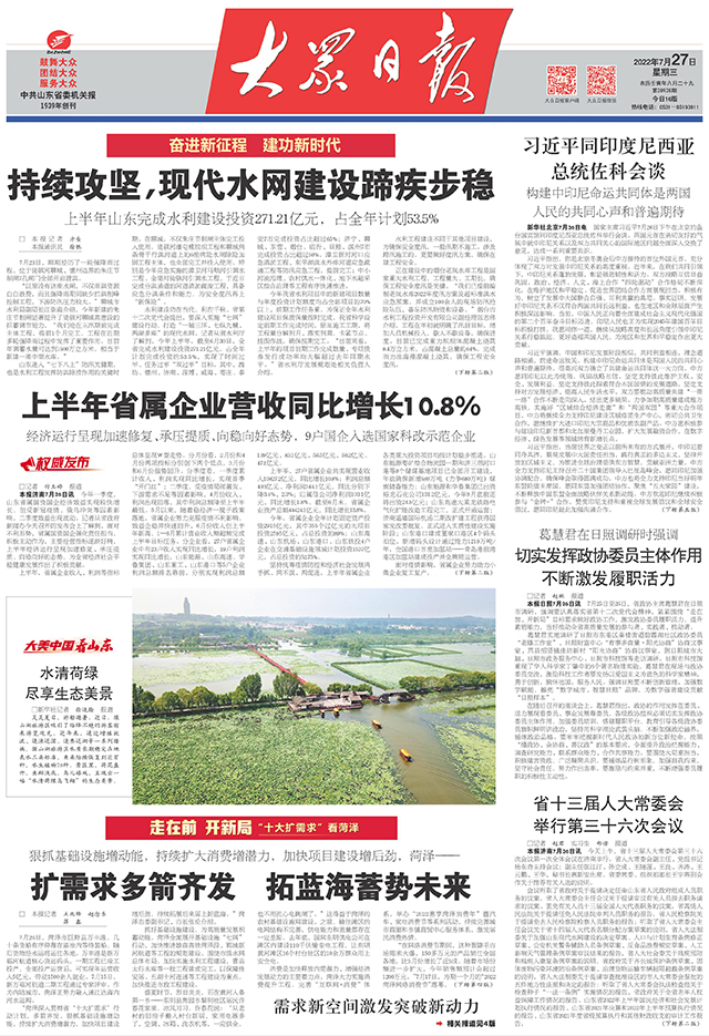 7月4日起,公共日报及客户端等新平台推出“走正在前 开新局”大型全从题报道,记者深切16市下层一线调研采访,集中展示各地贯彻落练习总对山东工做的主要要求,锚定“走正在前、开新局”,推进“三个十大”步履的立异行动、进展成效,活泼讲述各地砥砺奋进、立异实干的新鲜事例,充实反映山东成长的新变化新景象形象,以现实步履驱逐党的二十大胜利召开。今天刊发第二十一组报道:“十大扩需求”看菏泽。